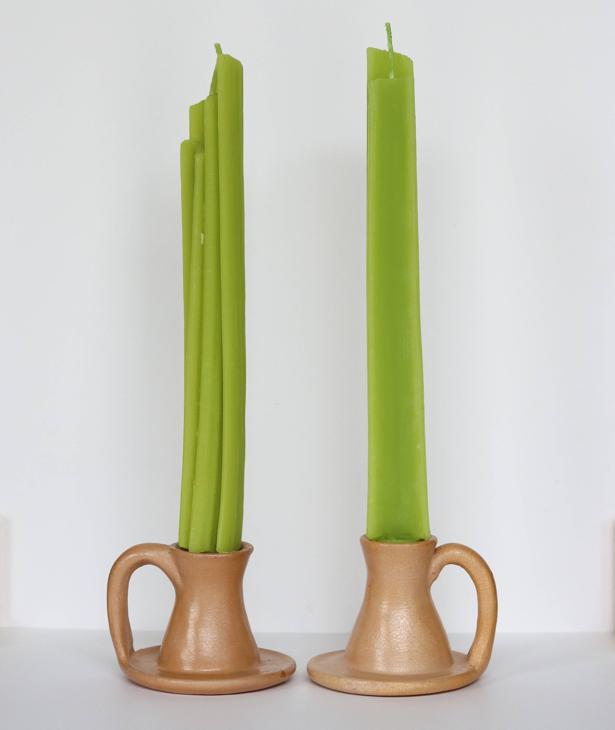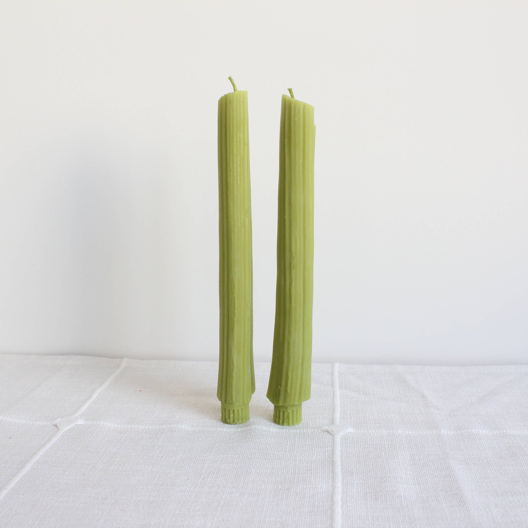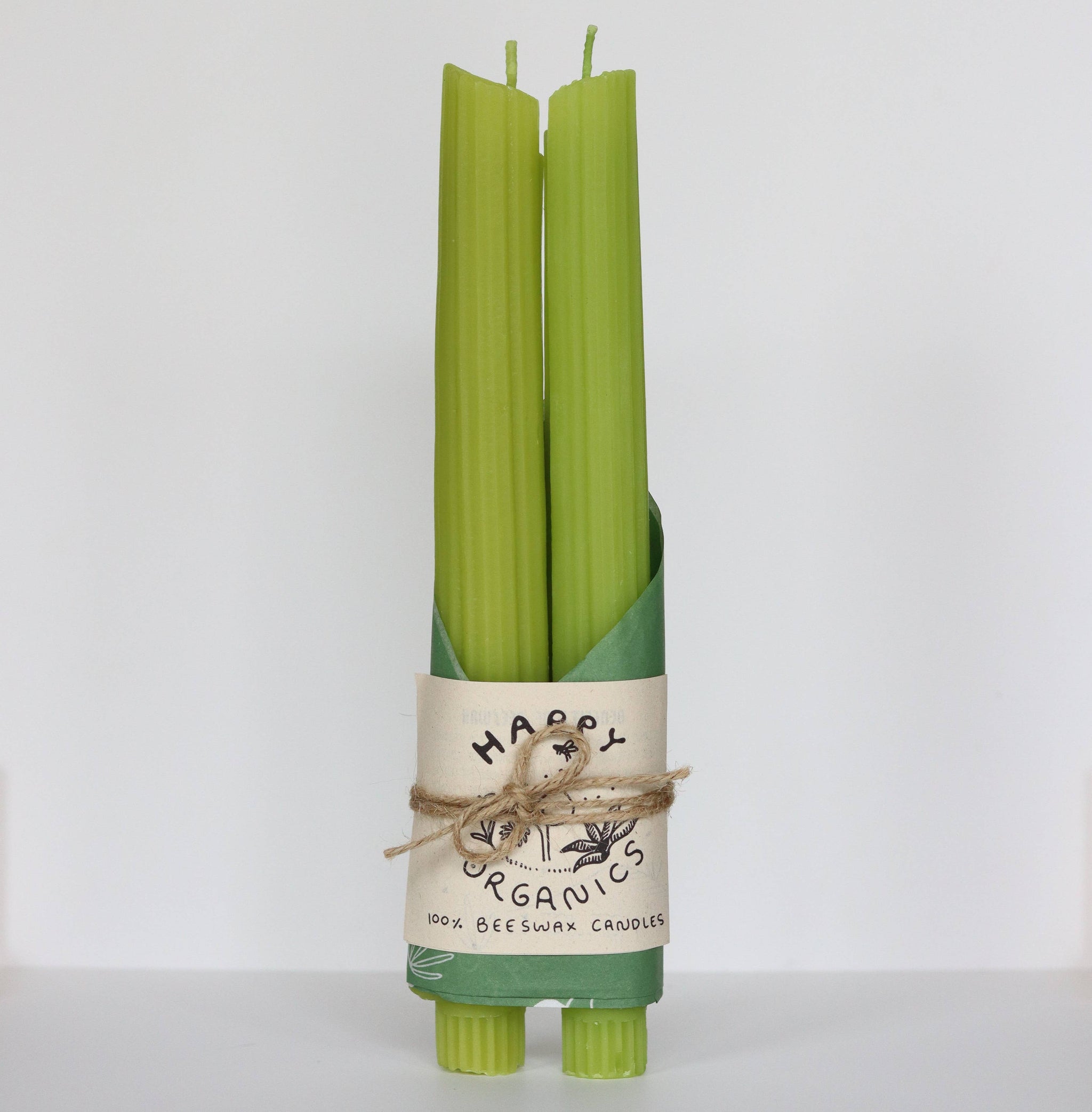 Includes: Celery Candles Taper Pair Materials: 100% beeswax, cotton wick, eco-friendly dye (non-carcinogenic, phthalate-free, third-party tested)