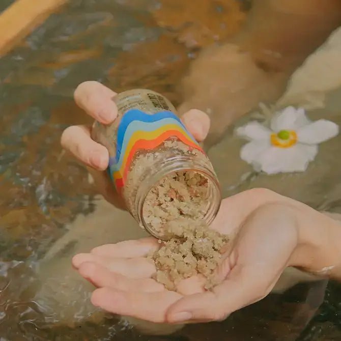 Melt away mind and muscle stress with this blend of mineral-rich salts, green clay, and jojoba oil inspired by nighttime dips in the hot springs of California.