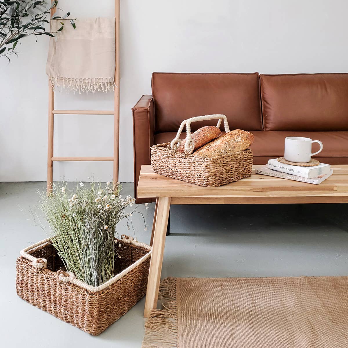 The use of these oversized nesting baskets is endless. Stylish and multifunctional use for everything from a picnic basket to organizing books, pillows, blankets, toys, and small household items. Each product is sustainably handmade by Fair Trade artisans in Bangladesh. [Dimensions & More Details] - Size: Approximately 4" tall x 12" wide x 9.5" deep