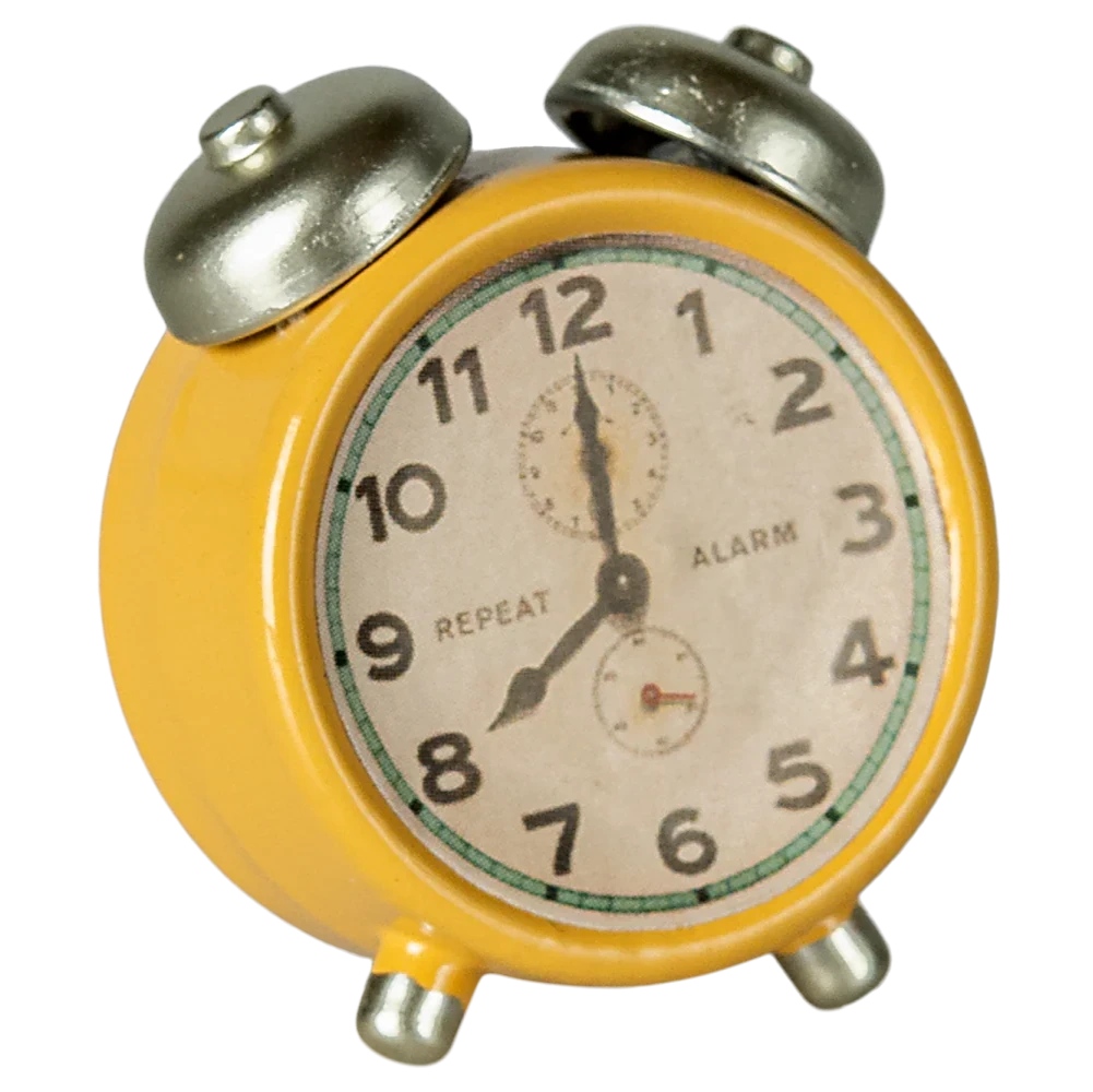 The bell rings and a new day of adventures starts. The small alarm clock is made in metal and with lots of small details.