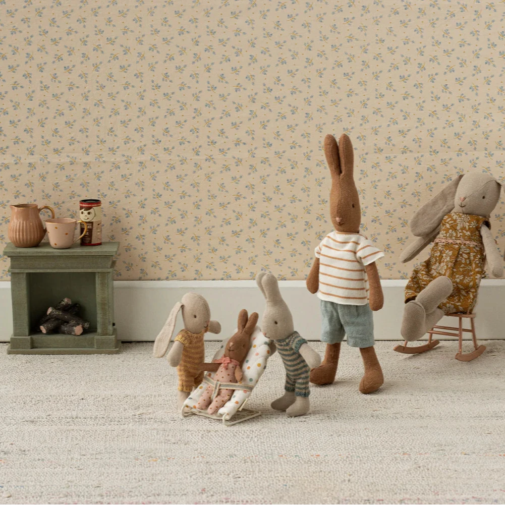 With this babysitter, it is easy to put your little friends to sleep. The base is made of metal and covered by the most lovely fabric. The chair fits my sized rabbits and baby mice perfectly.