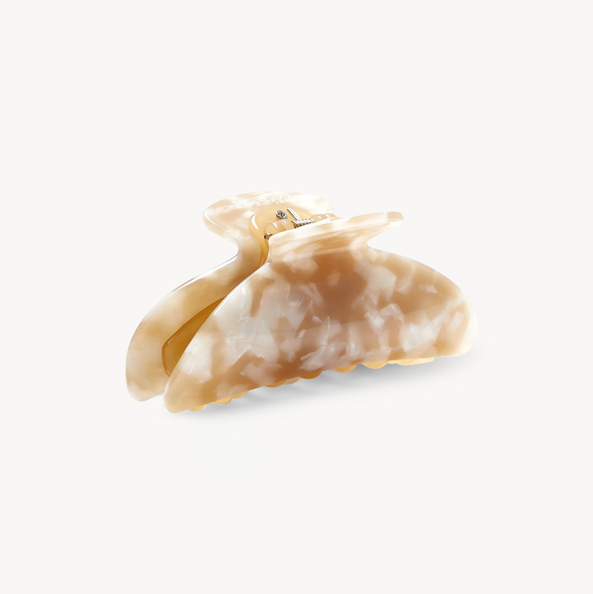 A double-walled hair claw designed to hold medium volumes of hair, handcrafted from Italian acetate with reinforced hardware. Recommended for all hair types and textures.