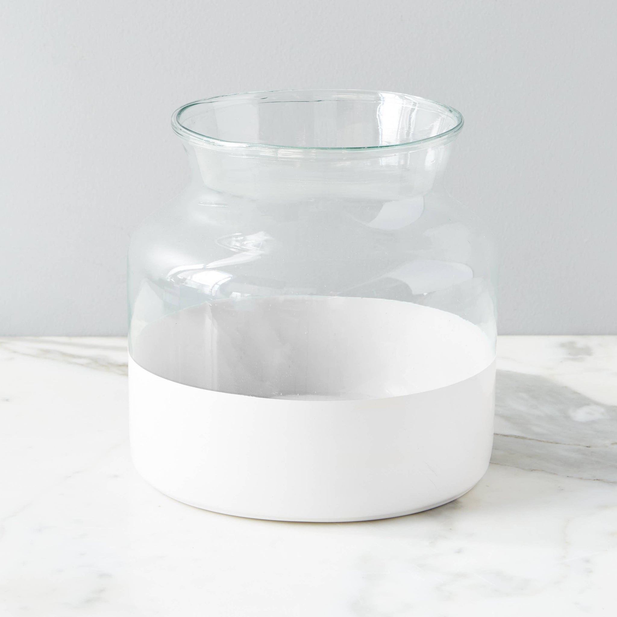 In villages throughout Europe, these wide mouth glass jars were used for the summer harvest. Our mason jars are made from recycled glass blown into authentic casts to retain their characteristic appeal. A modern take on a classic design, the Colorblock Flower Vase is a décor essential that brings joy to your home through a subtle splash of high-gloss color.